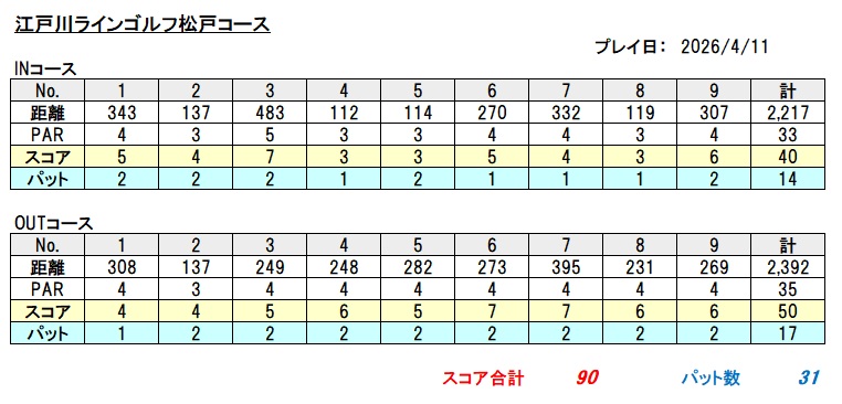 今日も80台を目指していたのですが、OUTで叩いてしまって90でした。